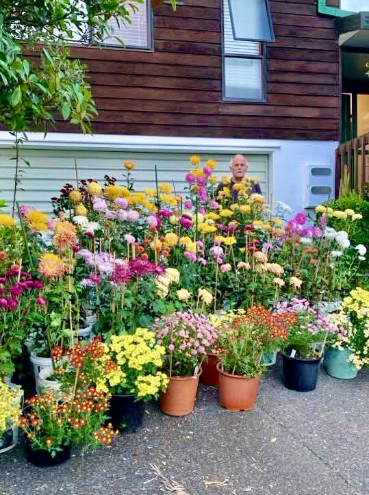 Second photo of society president, Stewart Bowmar, with his chrysanthemums